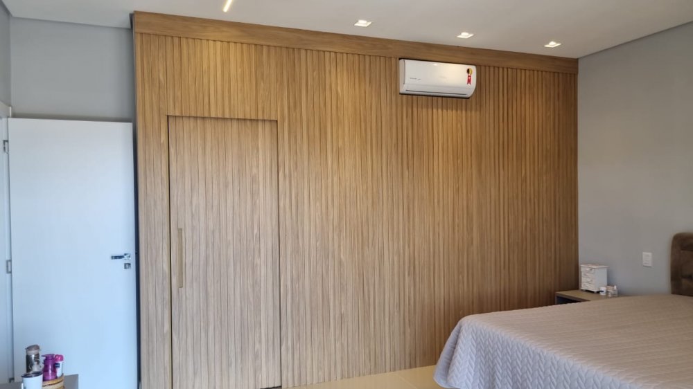 Rica em armários e completa em iluminação, além de ar condicionado cassete.