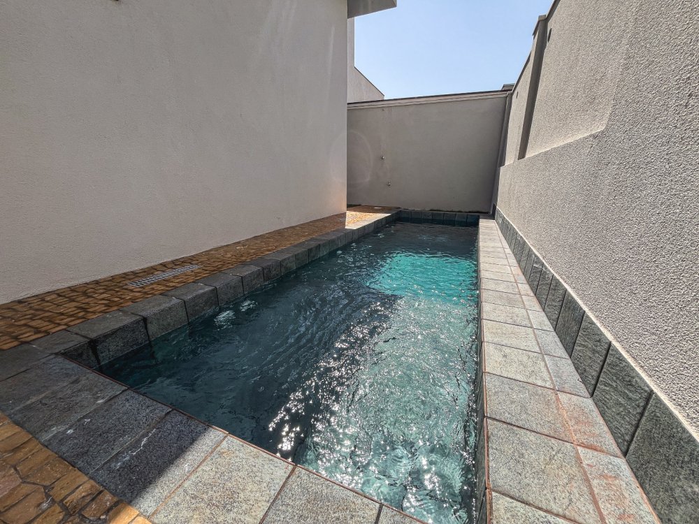 - Piscina de alvenaria revestida com cerâmica, equipada com hidromassagem e preparada para aquecimento