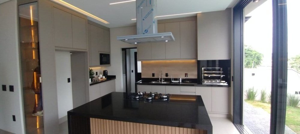 Cozinha Gourmet: Com micro-ondas, forno elétrico, cooktop, coifa e churrasqueira.