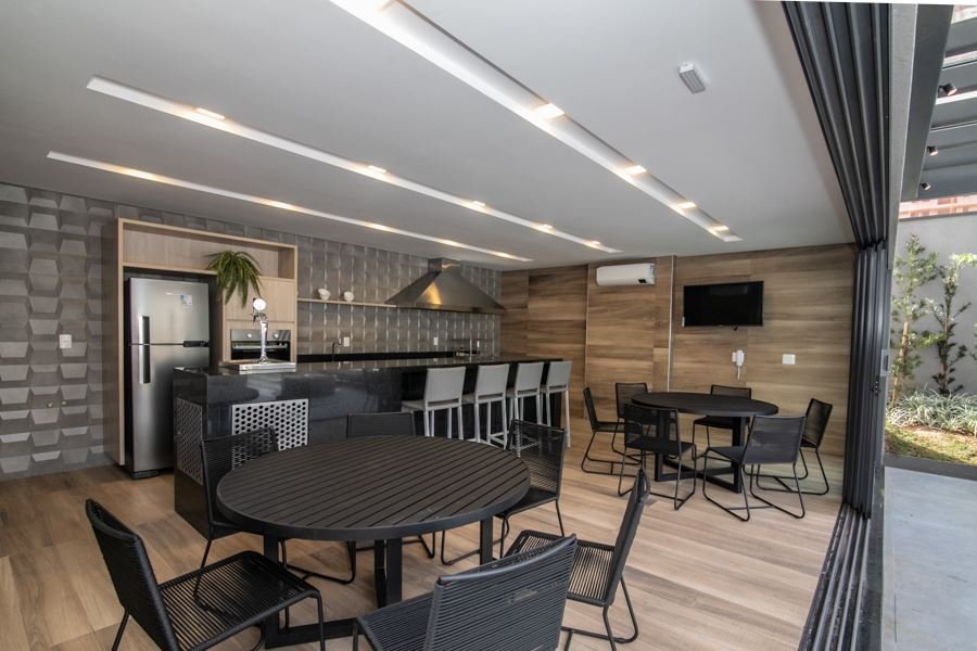 A experiência de morar aqui se estende para além das paredes do apartamento. O condomínio oferece uma infraestrutura completa de lazer e convivência. Desfrute de tardes ensolaradas na piscina, celebre conquistas no espaço gourmet ou no salão de festas e proporcione momentos de alegria para as crianças na brinquedoteca e no playground. Tudo isso sob a tranquilidade e segurança de uma portaria 24 horas.