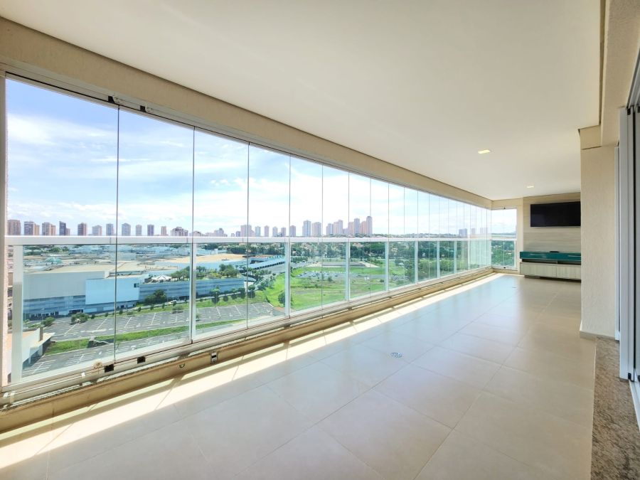 Varanda gourmet com fechamento em vidro (pode ser usada como área de churrasco ou lounge).