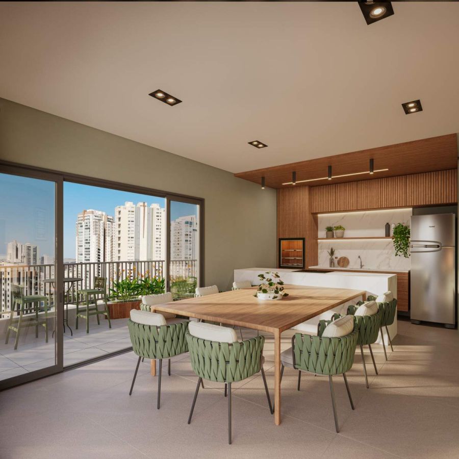 - Espaços Gourmet: Churrasqueira na sacada e espaço gourmet para momentos especiais com amigos e familiares.