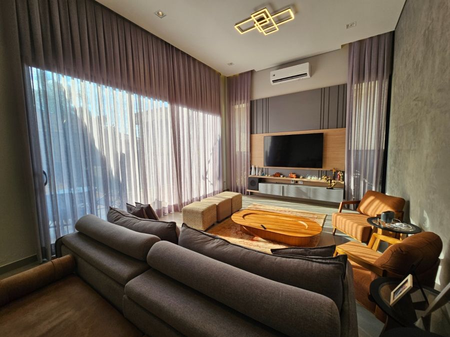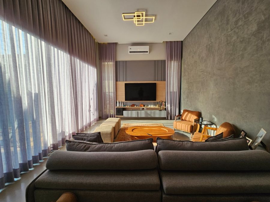 Sala de estar e jantar com pé direito de 4m e climatização