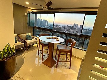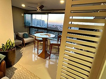 * Destaques Internos: Varanda com vista panorâmica, água quente e área de serviço com banheiro.