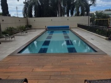 A unidade dispõe de três dormitórios, sendo uma suíte, configurando um layout inteligente que privilegia o conforto dos moradores. O ambiente interno é equipado com ar-condicionado e conta com uma sacada, além de uma área de serviço funcional. Entre os diferenciais, o imóvel possui piscina privativa, um recurso exclusivo que amplia as opções de lazer particular.