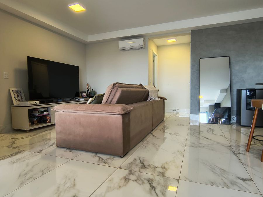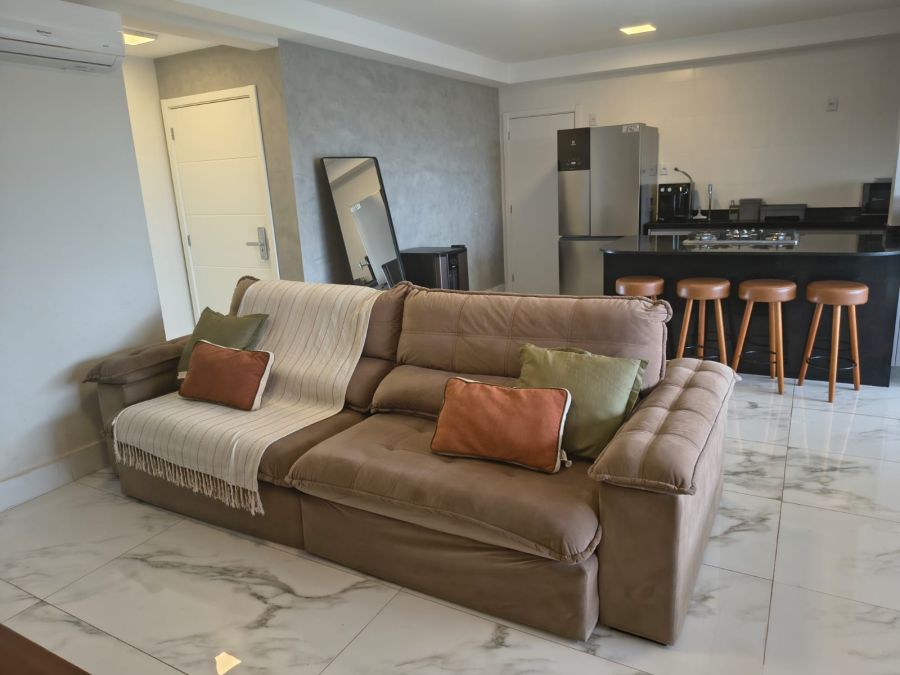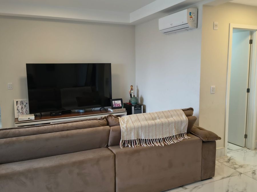 Com uma área privativa de 109 m², a unidade apresenta uma planta inteligente e bem distribuída. A área íntima é composta por 3 suítes com ar condicionado, garantindo total privacidade e conforto aos moradores. O living é amplo, integrado a um lavabo e a uma sacada que proporciona ventilação natural e iluminação aos ambientes. A cozinha segue o estilo americano, favorecendo a integração com a sala de estar que conta também com 2 ar-condicionado.