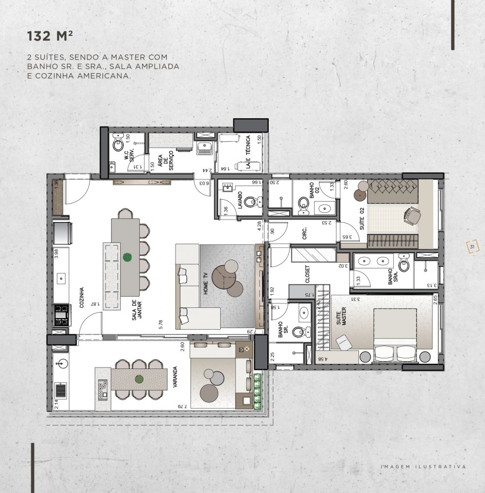 - Área Privativa: 132 m²
