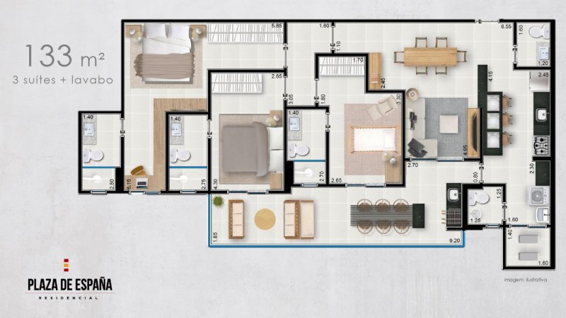 - Área Privativa: 133 m²