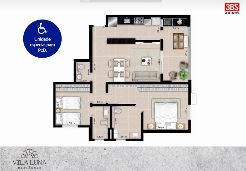 Além disso, o Vila Luna Residence também conta com apartamentos tipo PCD, garantindo a acessibilidade e a inclusão de todos.